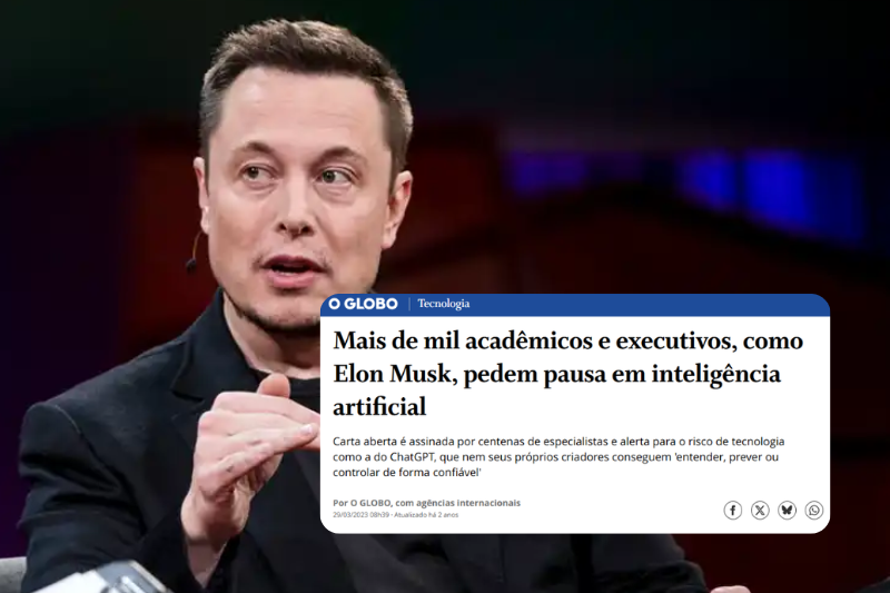 Em 2023, Elon Musk e centenas de especialistas, assinaram uma carta pública pedindo uma pausa no avanço da inteligência artificial.