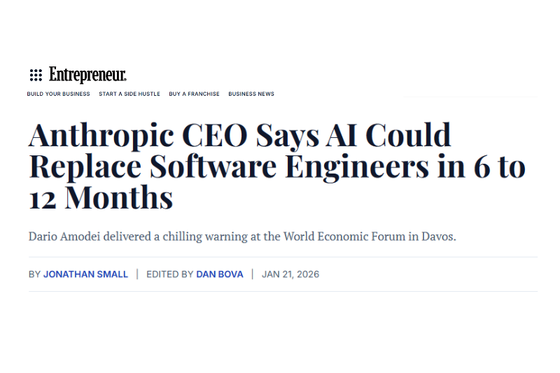 O CEO da Anthropic, Dario Amodei, disse que os modelos de IA já estão começando a avançar na resolução de problemas complexos e atingem níveis tão altos em programação, que muitos engenheiros experientes passaram a delegar grande parte do seu trabalho a esses sistemas.